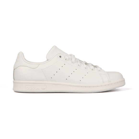 Adidas Originals Mens Stan Smith Trainer, in White and White. This classic court shoe that has evolved into a iconic everyday casual style. With a fully upper leather body, white rubber sole and perforated three stripe detail to the side. Completed with the iconic Stan Smith branding to the tongue and heel.