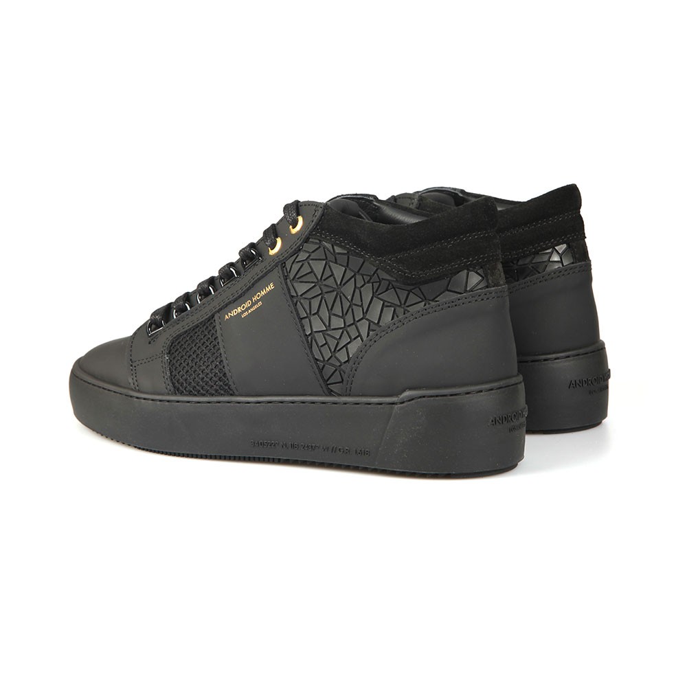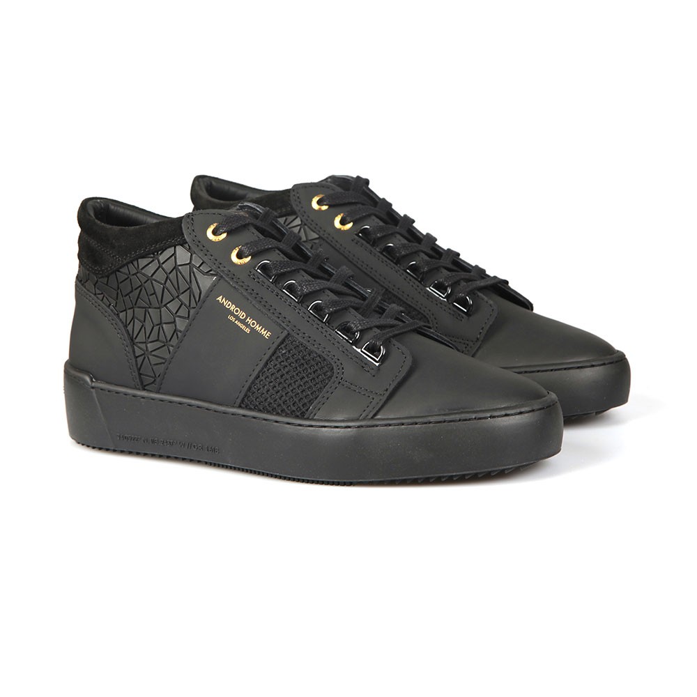 Android Homme Mens Propulsion Mid Rubber Mosaic Trainer £230.00 £69.00 70% Off Sorry, this item is out of stock. Details Info & Care Delivery Returns Android Homme Propulsion Mid Rubber Mosaic Trainer in Black are the ideal choice for the majority of casualwear outfits over the upcoming seasons and beyond. Featuring lace-up closure, gold eyelets, mosaic design to the upper and Android Homme branding to the tongue. Mid-Top Style Lace Fastening Chunky Sole Tongue Gold Logo Branding Suede Ankle Trim Upper: Leather, Textile Lining: Textile, Leather Outsole: Other Materials Wipe Clean if Required Always consult any care information We aim to dispatch all orders placed before 15:30 on the same day, Monday – Friday. Orders placed after 14:30 or placed at weekends/bank holidays will be dispatched on the next working day (working days are classed as Mon-Fri). Please see the Delivery page for further information. Masdings offer 7 delivery options across the UK, Europe and Rest of the world, for more details check the delivery page. Please return the item(s) to us in their original condition complete with labels* within 14 days of receipt in a protective postage bag/box. For more information please see the Shipping & Returns page.