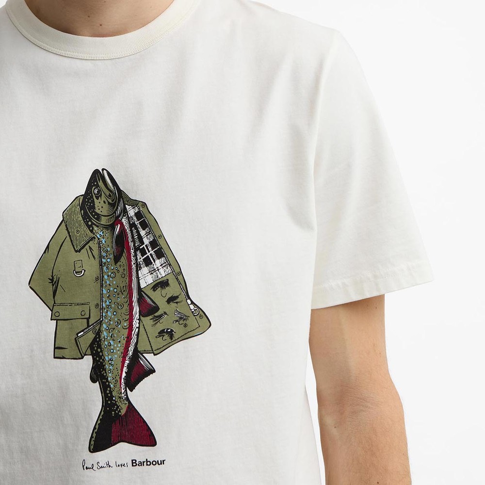 Barbour X Paul Smith Mens Fishing Jacket T-Shirt £59.95 Colour: Whisper White Stock alert Please alert me via email when this product is back in stock. Email address Size: Please select size Size Guide MLXLXXL Size Guide ADD TO BAG Email me when back in stock Add to wishlist Hurry - Limited Stock! Order before 15:30 for same day dispatch Mon – Fri (excludes UK Bank Holidays) Details Info & Care Delivery Returns Barbour x Paul Smith Fishing Jacket T-Shirt in Whisper White makes a unique addition to the latest casualwear collection as part of the Barbour and Paul Smith collaboration this season. Cut to a crew neck with short sleeves and featuring a branded "Fishing Jacket" graphic printed to the centre of the chest with a woven logo badge to the back of the neck. Barbour x Paul Smith Crew Neck Woven Logo Badge 100% Cotton Machine Washable at 30DEG Do not Bleach Do not Tumble Dry Warm Iron if Required Do not Dry Clean Always consult the care label We aim to dispatch all orders placed before 15:30 on the same day, Monday – Friday. Orders placed after 14:30 or placed at weekends/bank holidays will be dispatched on the next working day (working days are classed as Mon-Fri). Please see the Delivery page for further information. Masdings offer 7 delivery options across the UK, Europe and Rest of the world, for more details check the delivery page. Please return the item(s) to us in their original condition complete with labels* within 14 days of receipt in a protective postage bag/box. For more information please see the Shipping & Returns page.