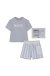BOSS Baby Boys J53048 T Shirt & Short Set £99.95 Stock alert Please alert me via email when this product is back in stock. Email address Size: Please select size Size Guide 1 Month3 Months6 Months9 Months Size Guide ADD TO BAG Email me when back in stock Add to wishlist Hurry - Limited Stock! Order before 15:30 for same day dispatch Mon – Fri (excludes UK Bank Holidays) Details Info & Care Delivery Returns BOSS Baby J53048 T-Shirt & Short Set in Pale Blue takes classic BOSS style to your newborn's collection for the new season, perfect for the warmer weather of the period. The t-shirt features printed branding to the centre of the chest and popper fastening to the left shoulder. The shorts are constructed with a drawstring adjustable, elasticated waistband and features embroidered branding to the lower left leg. BOSS Baby T-Shirt and Shorts Printed Branding Shell: 95% Cotton, 5% Elastane Trimming: 100% Cotton Machine Washable at 30DEG Do not Bleach Do not Tumble Dry Cool Iron if Required Do not Dry Clean Always consult the care label We aim to dispatch all orders placed before 15:30 on the same day, Monday – Friday. Orders placed after 14:30 or placed at weekends/bank holidays will be dispatched on the next working day (working days are classed as Mon-Fri). Please see the Delivery page for further information. Masdings offer 7 delivery options across the UK, Europe and Rest of the world, for more details check the delivery page. Please return the item(s) to us in their original condition complete with labels* within 14 days of receipt in a protective postage bag/box. For more information please see the Shipping & Returns page.
