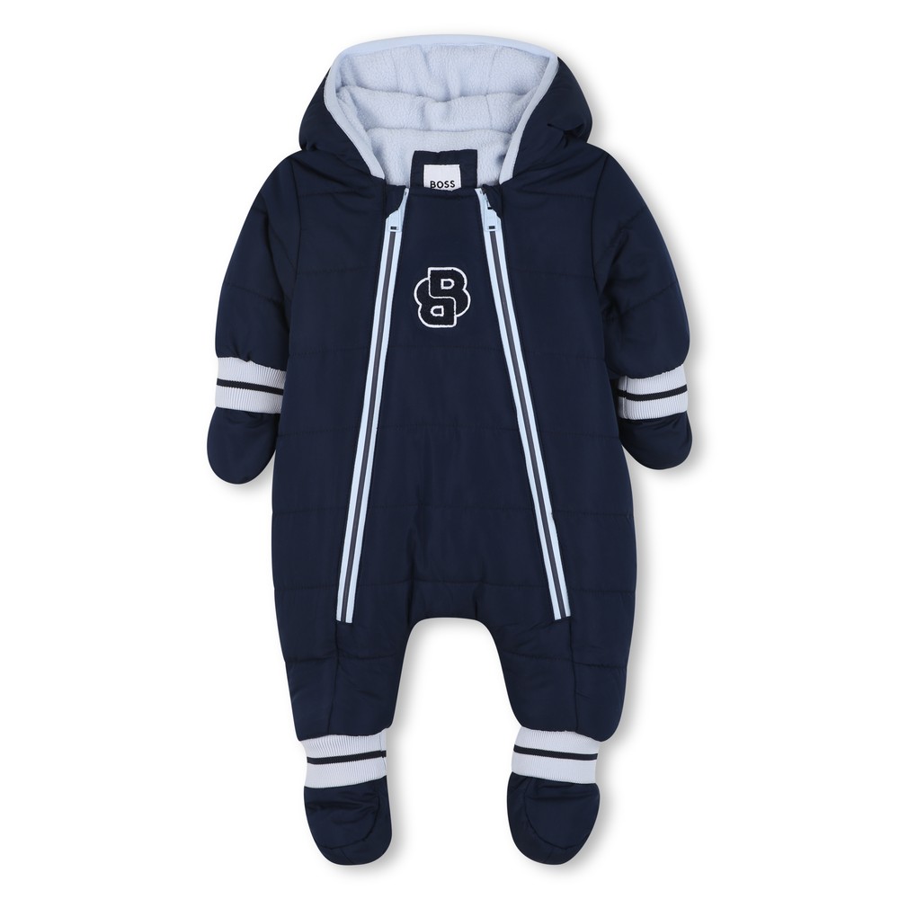 BOSS Boys Front Double Closure Bomber All-In-One £199.00 £179.10 10% Off Stock alert Please alert me via email when this product is back in stock. Email address Size: Please select size Size Guide 3 Months6 Months9 Months Size Guide ADD TO BAG Email me when back in stock Add to wishlist Hurry - Limited Stock! Order before 15:30 for same day dispatch Mon – Fri (excludes UK Bank Holidays) Details Info & Care Delivery Returns BOSS Front Double Closure Bomber All-In-One in Navy brings a classic BOSS look to your newborn's collection for the new season, perfect for the colder conditions ahead. Constructed with double-zip closure at the front and featuring flocked branding to the centre of the chest. BOSS Double Zip Flocked Branding Shell: 100% Polyester Lining: 100% Polyester Sleeve Lining: 100% Polyester Trimming: 98% Cotton, 2% Elastane Machine Wasahble at 30DEG Do not Bleach Do not Tumble Dry Do not Iron Do not Dry Clean Always consult the care label We aim to dispatch all orders placed before 15:30 on the same day, Monday – Friday. Orders placed after 14:30 or placed at weekends/bank holidays will be dispatched on the next working day (working days are classed as Mon-Fri). Please see the Delivery page for further information. Masdings offer 7 delivery options across the UK, Europe and Rest of the world, for more details check the delivery page. Please return the item(s) to us in their original condition complete with labels* within 14 days of receipt in a protective postage bag/box. For more information please see the Shipping & Returns page.