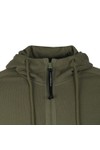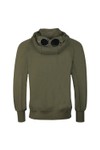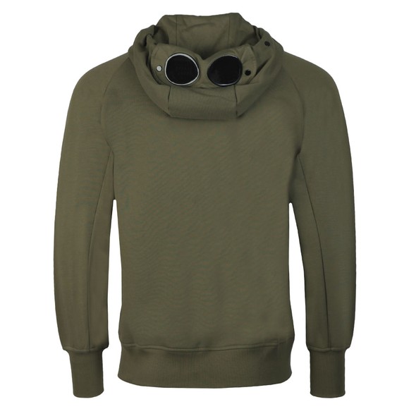 C.P. Company Mens Full Zip Goggle Hoody in Green. Features the signature goggles which are inserted in the hood, two zip fastening side pockets, ribbed cuffs and waistband and finished with a classic contrast drawstring hood. This is a Regular Fit garment, which is true to size across the chest and body.