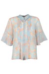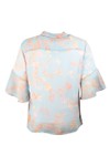 French Connection Diana Crinkle Pintuck Shirt in 'forget me not multi' is a sheer blous that features a powder blue and muted orange floral print design and is updated with a frill sleeve and pleat detail to the front.