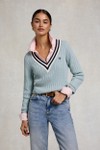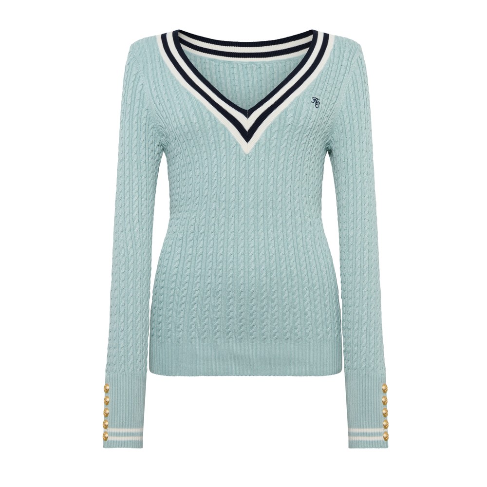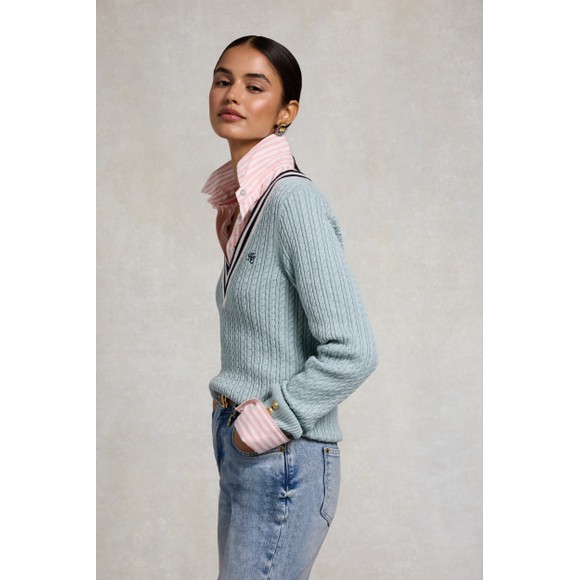Holland Cooper Womens Lucy Knitted Jumper £89.00 Colour: Aqua Stock alert Please alert me via email when this product is back in stock. Email address Size: Please select size Size Guide XSSML Size Guide ADD TO BAG Email me when back in stock Add to wishlist Hurry - Limited Stock! Order before 15:30 for same day dispatch Mon – Fri (excludes UK Bank Holidays) Details Info & Care Delivery Returns Holland Cooper Lucy Knitted Jumper in 'aqua' has an all-over cable knit design and features a contrasting striped neckline, HC embroidered branding to the chest and gold button hardware to the sleeve cuff. Blue V Neck Cable Knit Holland Cooper Jumper HC Embroidery Black Button Hardware Stretchy Fit 84% Viscose 16% Polyamide 30°C Wash on Delicate Cycle Do Not Tumble Dry Cool Iron Do Not Dry Clean We aim to dispatch all orders placed before 15:30 on the same day, Monday – Friday. Orders placed after 14:30 or placed at weekends/bank holidays will be dispatched on the next working day (working days are classed as Mon-Fri). Please see the Delivery page for further information. Masdings offer 7 delivery options across the UK, Europe and Rest of the world, for more details check the delivery page. Please return the item(s) to us in their original condition complete with labels* within 14 days of receipt in a protective postage bag/box. For more information please see the Shipping & Returns page.