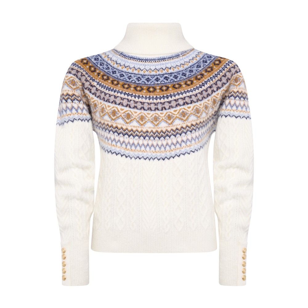 Holland Cooper Womens Rebecca Roll Neck Knit £149.00 Colour: Natural Stock alert Please alert me via email when this product is back in stock. Email address Size: Please select size Size Guide SML Size Guide ADD TO BAG Email me when back in stock Add to wishlist Hurry - Limited Stock! 2 hours 4 mins left for dispatch today Details Info & Care Delivery Returns Holland Cooper Rebecca Roll Neck Knit Jumper in 'natural' is a cable knit, wool-blend jumper that features a festive-inspired fairisle pattern and gold HC-branded hardware to the sleeve cuffs. Cream Fairisle Holland Cooper Roll Neck Jumper Gold Branded Button Hardware Wool Blend Stretchy Fit 58% Acrylic 29% Nylon 10% Wool 3% Elastane Machine Handwash or Wash on Wool Cycle Do Not Tumble Dry Cool Iron Do Not Dry Clean We aim to dispatch all orders placed before 15:30 on the same day, Monday – Friday. Orders placed after 14:30 or placed at weekends/bank holidays will be dispatched on the next working day (working days are classed as Mon-Fri). Please see the Delivery page for further information. Masdings offer 7 delivery options across the UK, Europe and Rest of the world, for more details check the delivery page. Please return the item(s) to us in their original condition complete with labels* within 14 days of receipt in a protective postage bag/box. For more information please see the Shipping & Returns page.