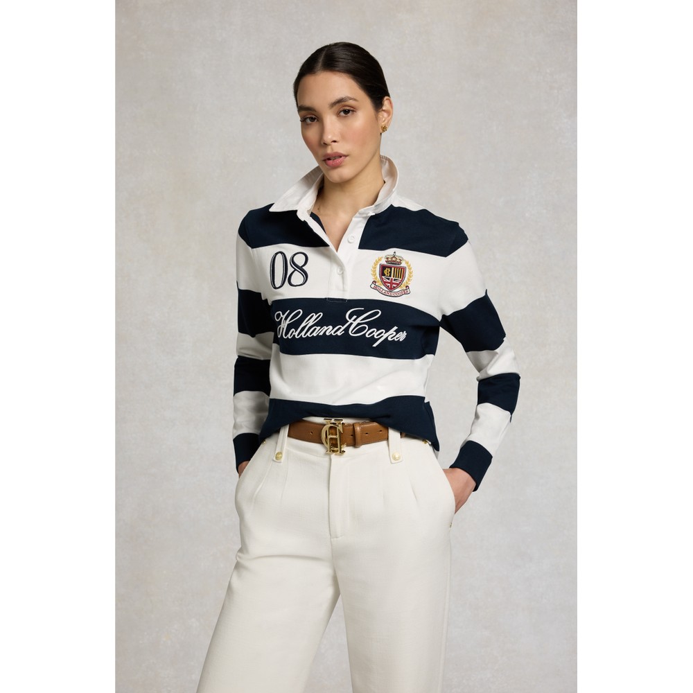 Holland Cooper Womens Stripe Rugby Shirt £79.00 Colour: Navy Ecru Stock alert Please alert me via email when this product is back in stock. Email address Size: Please select size Size Guide SMLXL Size Guide ADD TO BAG Email me when back in stock Trustpilot Add to wishlist Hurry - Limited Stock! 12 hours 21 mins left for dispatch today Details Info & Care Delivery Returns Holland Cooper Stripe Rugby Shirt in Navy Ecru blends a comfortable construction with a classic silhouette to bring a versatile addition to your new season wardrobe. Constructed with a three-button placket and long sleeves with ribbed cuffs while featuring embroidered crest branding to the left side of the chest. Holland Cooper Long Sleeves Embroidered Crest Logo 100% Cotton Machine Washable at 30DEG Do not Bleach Do not Tumble Dry Cool Iron if Required Do not Dry Clean Always consult the care label We aim to dispatch all orders placed before 15:30 on the same day, Monday – Friday. Orders placed after 14:30 or placed at weekends/bank holidays will be dispatched on the next working day (working days are classed as Mon-Fri). Please see the Delivery page for further information. Masdings offer 7 delivery options across the UK, Europe and Rest of the world, for more details check the delivery page. Please return the item(s) to us in their original condition complete with labels* within 14 days of receipt in a protective postage bag/box. For more information please see the Shipping & Returns page.