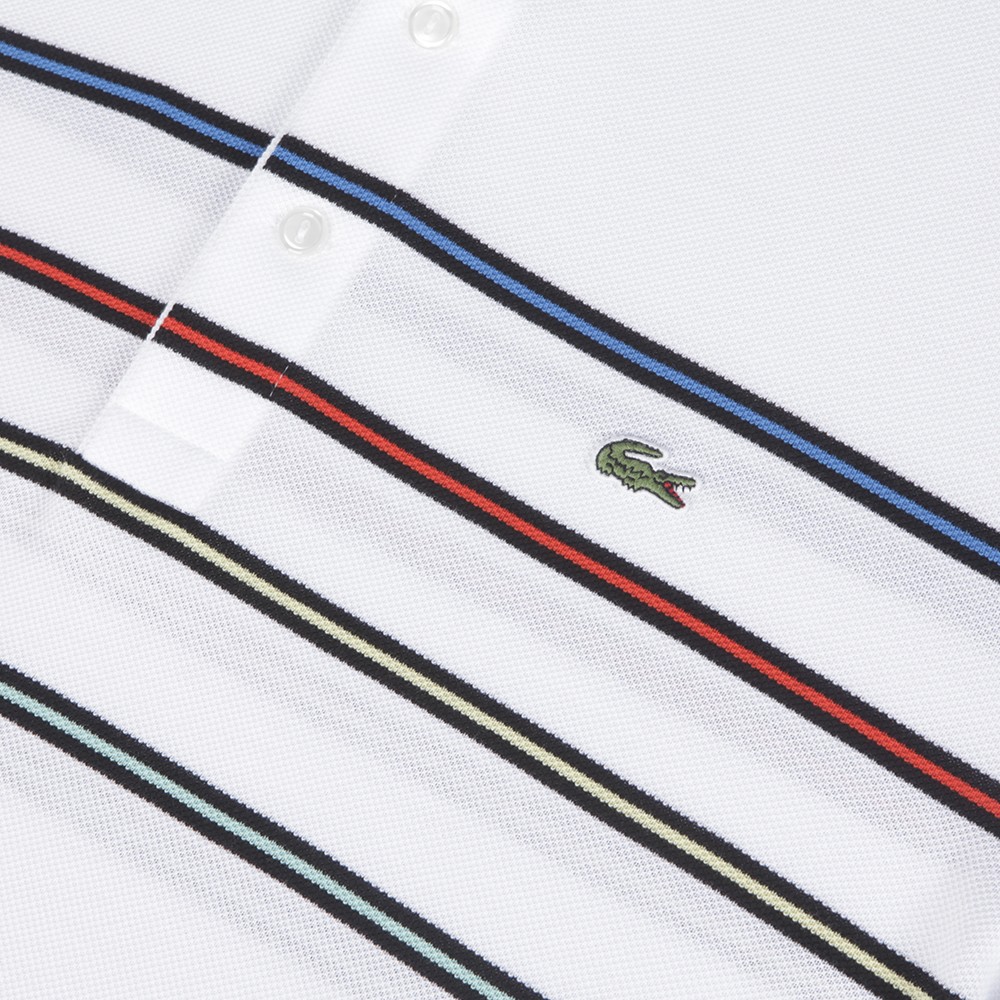 Lacoste Mens Lacoste White Multi-Striped Polo Shirt £85.00 Sorry, this item is out of stock. Details Info & Care Delivery Returns Fantastic casual, regular fit polo shirt with four thin multi colour detail stripes with a bold boarder on the chest and back as well as the iconic Lacoste crocodile on the chest.This is a Fitted garment, which is shaped and a slimmer fit in the body and across the chest. If you require a slimmer fit, stick to your usual size. For a looser fit you may require a bigger size. * Regular Fit * 4 Multi Colour Stripe Detail * Small Croc Badge * Three Button Fastening 100% Cotton * 100% Cotton * 40° C Wash * Medium Heat Iron * Do Not Tumble Dry We aim to dispatch all orders placed before 15:30 on the same day, Monday – Friday. Orders placed after 14:30 or placed at weekends/bank holidays will be dispatched on the next working day (working days are classed as Mon-Fri). Please see the Delivery page for further information. Masdings offer 7 delivery options across the UK, Europe and Rest of the world, for more details check the delivery page. Please return the item(s) to us in their original condition complete with labels* within 14 days of receipt in a protective postage bag/box. For more information please see the Shipping & Returns page.