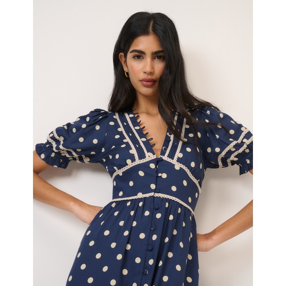Nobody's Child Womens Saffy Midi Dress £89.00 Stock alert Please alert me via email when this product is back in stock. Email address Size: Please select size Size Guide 8101214 Size Guide ADD TO BAG Email me when back in stock Add to wishlist Hurry - Limited Stock! Order before 15:30 for same day dispatch Mon – Fri (excludes UK Bank Holidays) Details Info & Care Delivery Returns Nobody's Child Saffy Midi Dress in 'soft blue' features an on-trend polka-dot style, button detail and two slip pockets. The long navy midi dress is perfect for summer and can be dressed up or down. Navy Polka-Dot Nobody's Child Midi Dress Button Detail V Neckline Scallop Detail Two Pockets 100% Viscose 30°C Wash on Gentle Cycle Do Not Tumble Dry Warm Iron Do Not Dry Clean We aim to dispatch all orders placed before 15:30 on the same day, Monday – Friday. Orders placed after 14:30 or placed at weekends/bank holidays will be dispatched on the next working day (working days are classed as Mon-Fri). Please see the Delivery page for further information. Masdings offer 7 delivery options across the UK, Europe and Rest of the world, for more details check the delivery page. Please return the item(s) to us in their original condition complete with labels* within 14 days of receipt in a protective postage bag/box. For more information please see the Shipping & Returns page.