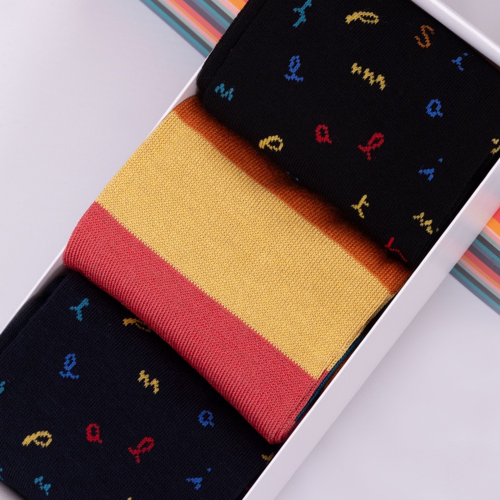 Paul Smith Mens 3 Pack Boxed Bright Logo Socks £65.00 5.0 (1) Write a review Colour: Mixed Plate Stock alert Please alert me via email when this product is back in stock. Email address Size: Please select size Size Guide One Size Size Guide ADD TO BAG Email me when back in stock Add to wishlist Hurry - Limited Stock! Order before 15:30 for same day dispatch Mon – Fri (excludes UK Bank Holidays) Details Info & Care Delivery Returns Paul Smith 3 Pack Boxed Socks, in Multicolour Stripe. Paul Smith 3 Pack Boxed Socks Stripe Detail One Size 80% Cotton, 18% Nylon, 2% Elastane Machine Washable at 40DEG Do not Bleach Do not Tumble Dry Do not Iron Do not Dry Clean Always consult the care label We aim to dispatch all orders placed before 15:30 on the same day, Monday – Friday. Orders placed after 14:30 or placed at weekends/bank holidays will be dispatched on the next working day (working days are classed as Mon-Fri). Please see the Delivery page for further information. Masdings offer 7 delivery options across the UK, Europe and Rest of the world, for more details check the delivery page. Please return the item(s) to us in their original condition complete with labels* within 14 days of receipt in a protective postage bag/box. For more information please see the Shipping & Returns page.