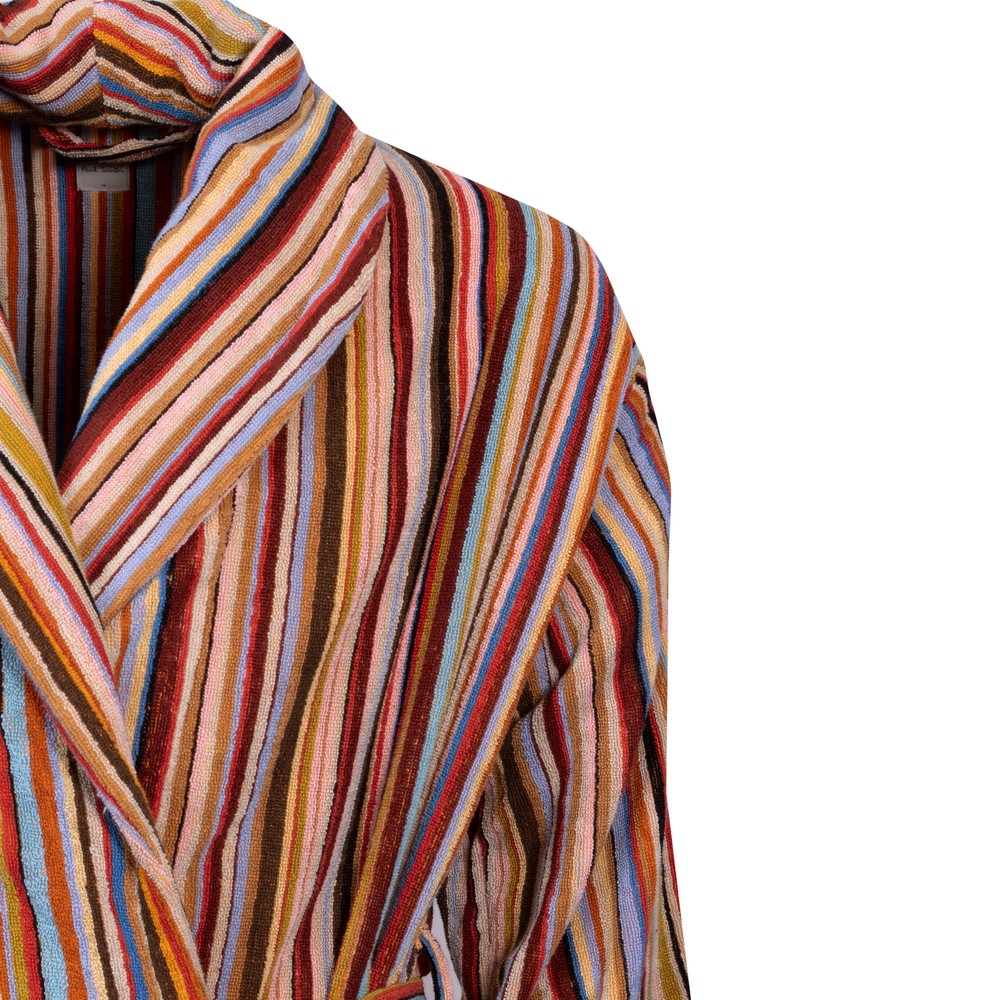 Paul Smith Mens Signature Dressing Gown £165.00 Stock alert Please alert me via email when this product is back in stock. Email address Size: Please select size Size Guide XL Size Guide ADD TO BAG Email me when back in stock Add to wishlist Hurry - Limited Stock! Order before 15:30 for same day dispatch Mon – Fri (excludes UK Bank Holidays) Delivery Returns We aim to dispatch all orders placed before 15:30 on the same day, Monday – Friday. Orders placed after 14:30 or placed at weekends/bank holidays will be dispatched on the next working day (working days are classed as Mon-Fri). Please see the Delivery page for further information. Masdings offer 7 delivery options across the UK, Europe and Rest of the world, for more details check the delivery page. Please return the item(s) to us in their original condition complete with labels* within 14 days of receipt in a protective postage bag/box. For more information please see the Shipping & Returns page.