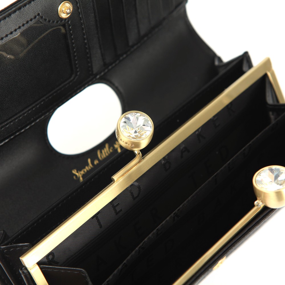 Ted Baker Womens Paisla Opal Crystal Bobble Purse £89.00 £26.70 70% Off Sorry, this item is out of stock. Details Info & Care Delivery Returns Ted Baker Paisla Opal Crystal Bobble Purse in 'black' has been crafted from textured leather and features a gold crystal top bobble closure. Adorned with a large opal flower to the front and finished with gold Ted Baker printed branding. Store all cards, coins and notes within the internal compartments. Approx: H: 9.5cm x W: 19cm x D: 4cm Floral Leather Ted Baker Purse Gold Crystal Bobble Closure Press Stud Closure Interior Compartments for Coins, Notes & Cards Exterior Pocket Gold Printed Branding Outer: 100% Bovine Leather Lining: 100% Polyester Do Not Wash We aim to dispatch all orders placed before 15:30 on the same day, Monday – Friday. Orders placed after 14:30 or placed at weekends/bank holidays will be dispatched on the next working day (working days are classed as Mon-Fri). Please see the Delivery page for further information. Masdings offer 7 delivery options across the UK, Europe and Rest of the world, for more details check the delivery page. Please return the item(s) to us in their original condition complete with labels* within 14 days of receipt in a protective postage bag/box. For more information please see the Shipping & Returns page.