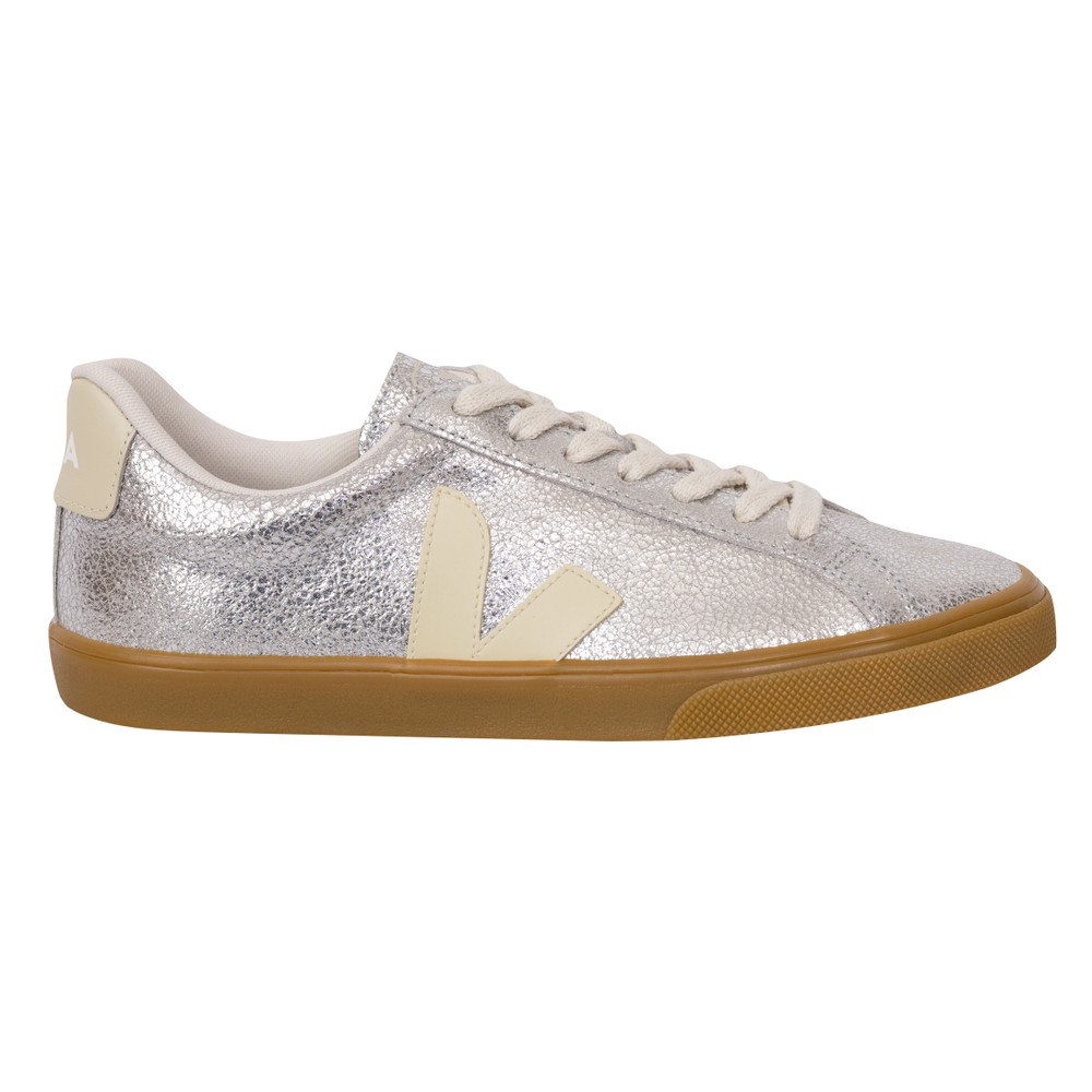 Veja Womens Esplar Trainer £120.00 Stock alert Please alert me via email when this product is back in stock. Email address Size: Please select size Size Guide 45678 Size Guide ADD TO BAG Email me when back in stock Add to wishlist Hurry - Limited Stock! 14 hours 20 mins left for dispatch today Details Info & Care Delivery Returns Veja Esplar Trainer in 'silver/pierre/natural' has an all-over cracked metallic silver design, beige V branding and a contrasting gum outsole. Metallic Silver Veja Trainers Lace Closure Gum Trim V Branding Upper: Leather Inner: Textile Outsole: Other Materials Do Not Wash We aim to dispatch all orders placed before 15:30 on the same day, Monday – Friday. Orders placed after 14:30 or placed at weekends/bank holidays will be dispatched on the next working day (working days are classed as Mon-Fri). Please see the Delivery page for further information. Masdings offer 7 delivery options across the UK, Europe and Rest of the world, for more details check the delivery page. Please return the item(s) to us in their original condition complete with labels* within 14 days of receipt in a protective postage bag/box. For more information please see the Shipping & Returns page.