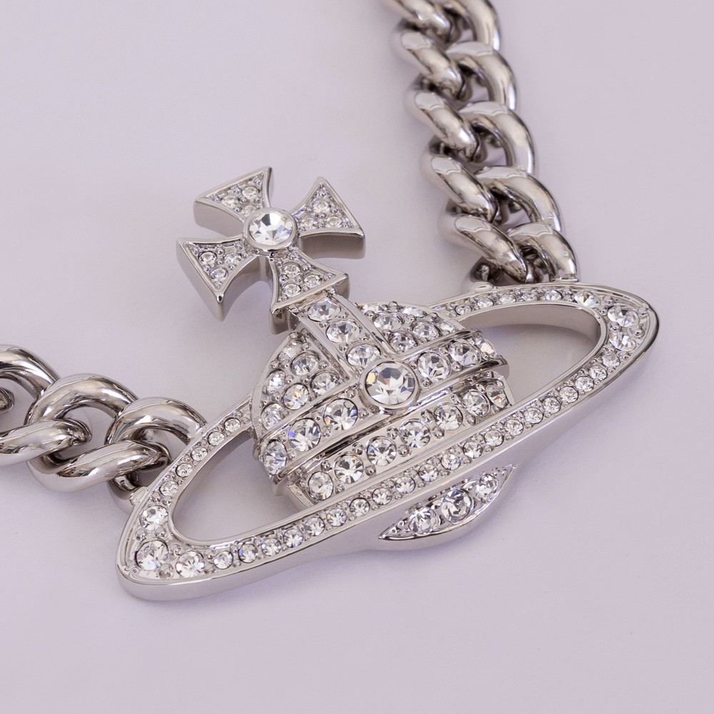 Vivienne Westwood Womens Neysa Chain Necklace £355.00 Stock alert Please alert me via email when this product is back in stock. Email address Size: Please select size Size Guide One Size Size Guide ADD TO BAG Email me when back in stock Add to wishlist Hurry - Limited Stock! Order before 15:30 for same day dispatch Mon – Fri (excludes UK Bank Holidays) Details Info & Care Delivery Returns Vivienne Westwood Neysa Chain Necklace in 'platinum/white' is a large statement chunk design that features a stone embellished orb and an interlock fastening. Orb Approx: H: 5cm x W: 7.5cm Chunky Silver Vivienne Westwood Orb Choker Lareg Stone Detail Interlock Fastening Statement Jewellery 100% Brass Do Not Wash We aim to dispatch all orders placed before 15:30 on the same day, Monday – Friday. Orders placed after 14:30 or placed at weekends/bank holidays will be dispatched on the next working day (working days are classed as Mon-Fri). Please see the Delivery page for further information. Masdings offer 7 delivery options across the UK, Europe and Rest of the world, for more details check the delivery page. Please return the item(s) to us in their original condition complete with labels* within 14 days of receipt in a protective postage bag/box. For more information please see the Shipping & Returns page.