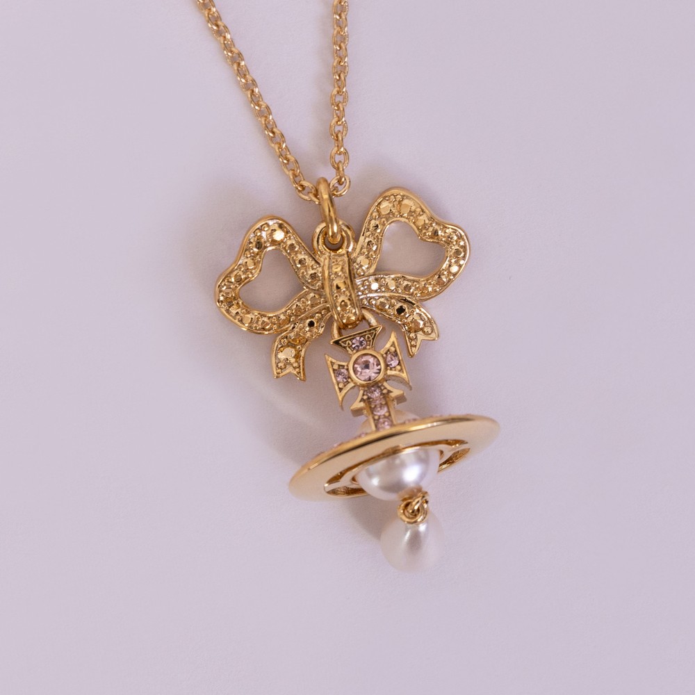 Vivienne Westwood Womens Rigoberta Pearl Pendant £149.00 Stock alert Please alert me via email when this product is back in stock. Email address Size: Please select size Size Guide One Size Size Guide ADD TO BAG Email me when back in stock Add to wishlist Hurry - Limited Stock! Order before 15:30 for same day dispatch Mon – Fri (excludes UK Bank Holidays) Details Info & Care Delivery Returns Vivienne Westwood Rigoberta Pearl Pendant in 'gold' features a pink stone embellished bow and a pearl orb droplet design. Approx Length: 25cm Gold Bow & Pearl Orb Vivienne Westwood Pendant Droplet Detail Pink Stone Embellishment Adjustable Length 100% Brass Do Not Wash We aim to dispatch all orders placed before 15:30 on the same day, Monday – Friday. Orders placed after 14:30 or placed at weekends/bank holidays will be dispatched on the next working day (working days are classed as Mon-Fri). Please see the Delivery page for further information. Masdings offer 7 delivery options across the UK, Europe and Rest of the world, for more details check the delivery page. Please return the item(s) to us in their original condition complete with labels* within 14 days of receipt in a protective postage bag/box. For more information please see the Shipping & Returns page.